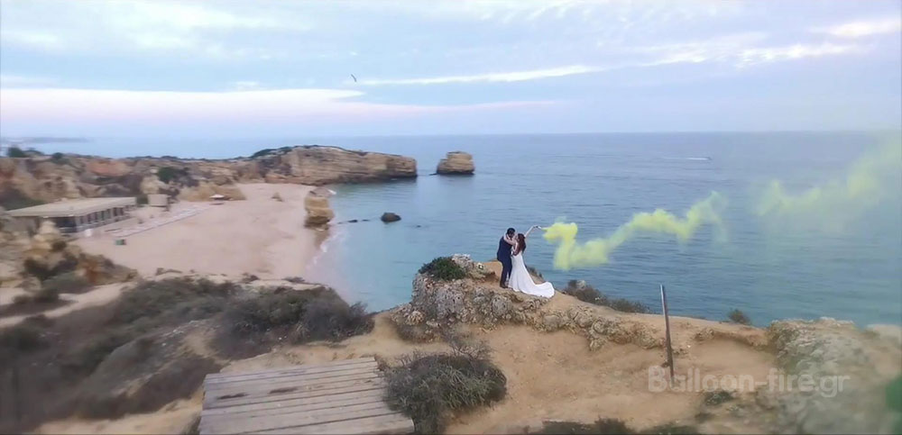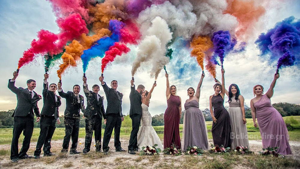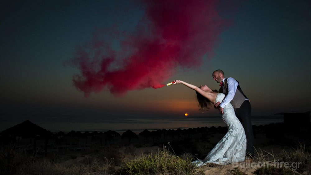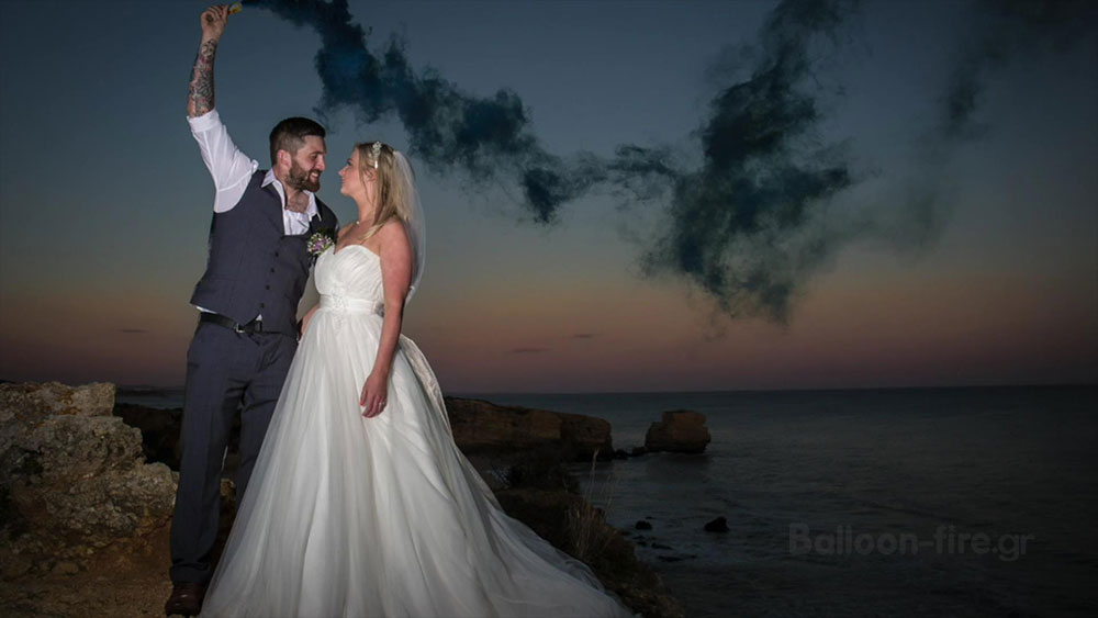 Για να πρωτοτυπήσουν τα ζευγάρια και να έχουν ένα μοναδικό γάμο, έχουμε συναντήσει ακραίες καταστάσεις, που πολλές φορές είναι ευρηματικές με φινετσάτο αποτέλεσμα και πολλές φορές το ακριβώς αντίθετο ξεπερνώντας τα όρια. Οι φωτογράφοι για να προάξουν το αποτέλεσμα της δουλειάς τους ,συχνά προτείνουν τα πρωτότυπα μέρη και πρωτότυπα εφέ για τη φωτογράφιση μετά το γάμο , ή την επόμενη ημέρα. Τα καπνογόνα και τα βεγγαλικά είναι μία πολύ νέα ιδέα που πολλά ζευγάρια την επιλέγουν. Οργανώνουν εντυπωσιακή είσοδο στη δεξίωση ή στην εκκλησία κρατώντας μαζί με κουμπάρους και φίλους πολύχρωμα καπνογόνα και βεγγαλικά και το πάρτυ του γάμου αρχίζει. Σε εντυπωσιακά τοπία η χρήση των καπνογόνων δίνει μία άλλη νότα, απογειώνει τη φωτογράφιση δημιουργώντας ρομαντικά τοπία .Ο φακός τα αποθανατίζει και μας μένει αξέχαστη για μια ζωή η τρέλα της μέρας αυτής.Τα καπνογόνα και τα βεγγαλικά μπορούν να χρησιμοποιηθούν πολύ εύκολα από όλους. Πυροδοτούνται χωρίς τη χρήση φωτιάς ,έτσι δεν καίνε γιατί δεν παράγουν φωτιά και υψηλή θερμοκρασία..Επιλέξτε για τις ιδιαίτερες στιγμές του γάμου σας πολύχρωμα βεγγαλικά και καπνογόνα από τη Balloon fire και χρωματίστε τις ομορφότερες στιγμές της ζωής σας.